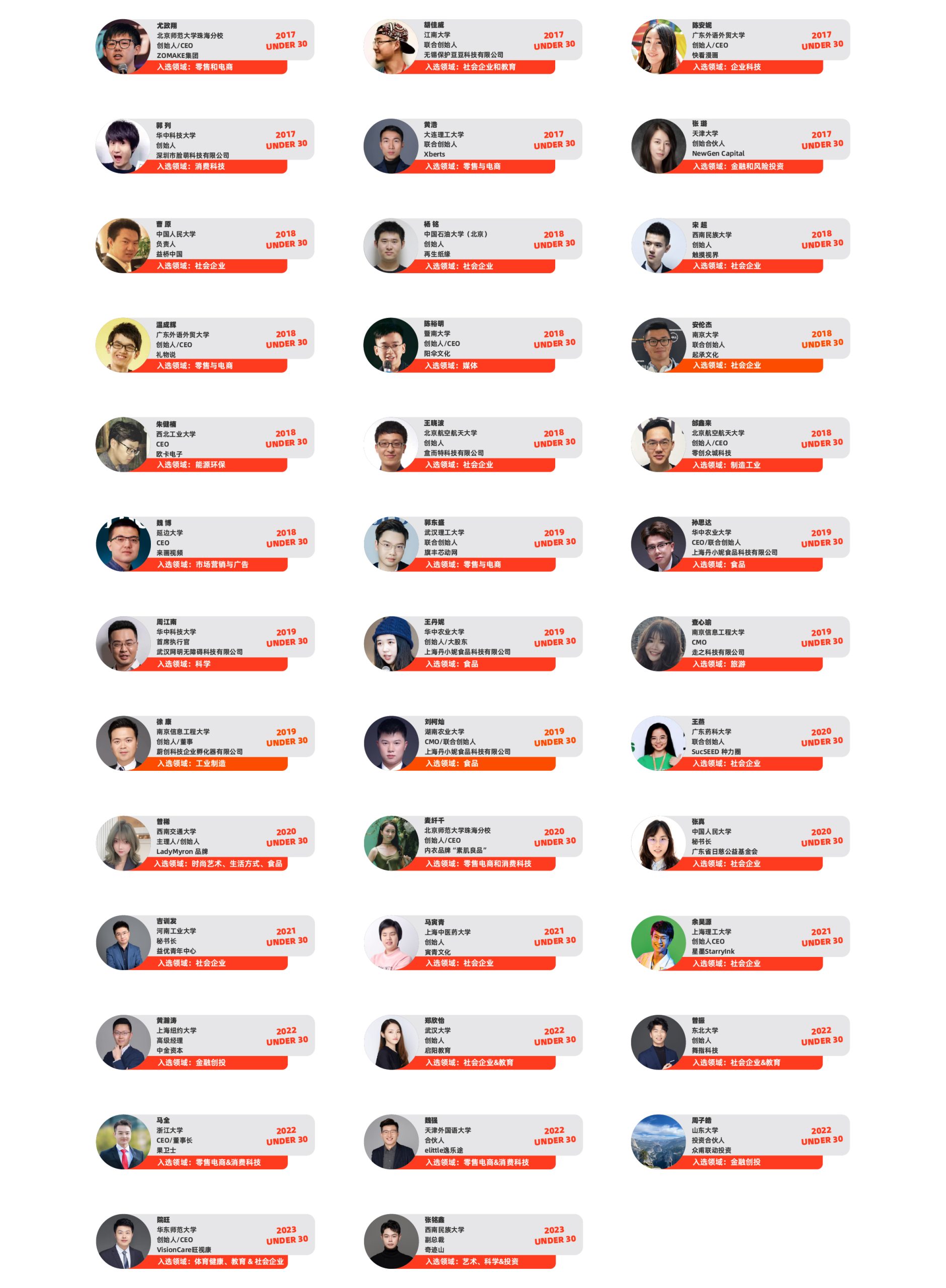 品牌介绍 益优青年是中国头部的大学生成长平台。秉持着“社会担当和商业素养,共同创造美好改变”的使命,益优青年通过和中国最有影响力的基金会和品牌合作,为大学生提供议题行动、赋能课程、导师辅导、赛事和种子资金的支持。截止目前,有39位益优青年校友入选福布斯中国30岁以下青年精英榜单。益优青年相信,投资年轻人就是投资未来。与富有企业家精神的年轻人一同采取行动,就能创造更加美好可持续的世界。 代表性项目 企业合作 社企孵化 志愿服务 未来企业家精神奖 合作企业 福布斯中国30Under30上榜校友